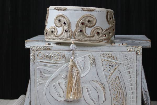 Nr. 137 Lederbommel Leder creme mit gold Kappel 50 % jetzt 10 Euro |